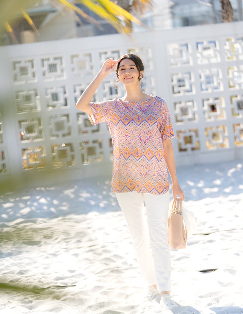 ■スタッフコメント はづき・身長:162cm・がっちり筋肉質体型 普段、スポーティフのトップスは4サイズ、パンツは4サイズ [着用サイズ4] 衿元にねじれたようになっているねじれ衿がワンポイントです。サイドにシャツカットが入っていて、丈も長めなので、気になるお尻もすっきり隠れます。