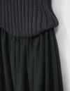 上半身にワイドリブのニットを使用し、フィット感と快適さを兼ね備えた、異素材ドッキングワンピースです。スカート部分はフレアーシルエットが動く度に揺れ、女性らしさを一層際立てます。
