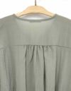 シアー素材で作った、ふんわりシルエットの8分袖ブラウスです。夏のワンピースの羽織りとして、トレンド性と実用性を兼ね備えた1枚です。肩ヨークのギャザーと、袖口のふんわり感で風通しが良く、涼しげな雰囲気です。