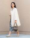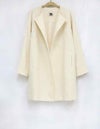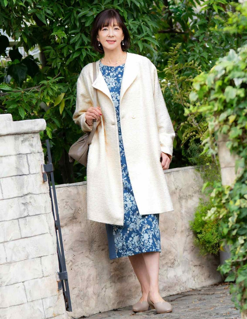 ノーカラーできちんと感がありながらも、前を開けて着用するとカジュアルスタイルにも仕上がります。袖口を折り返して袖丈に変化を付けることもできる、広がりすぎない縦長のシルエットの裏地付きツイードコートです。