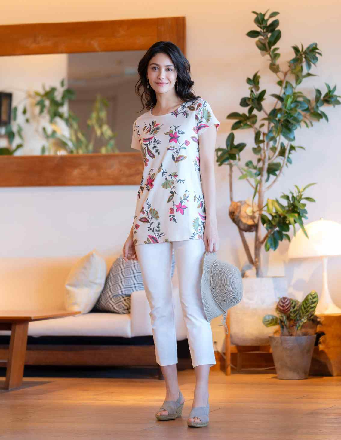 ラフィアつば広ハット