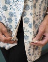 腕が上がらない・上げづらい方でも楽に着脱できる前開きファスナーのチュニック。肩側はマジックテープ仕様で着脱が簡単。腰周りをカバーできる安心丈。背中が曲がっている方にもお勧めです。肩のマジックテープを留めたままファスナーを開ければ、診察や授乳時にも活躍できます。肌にファスナーが直接当たらない仕様や、片側ポケット、露出ひかえめな安心首周りで、お名前タグ付き。あったら良いなを形にしたデザインです。