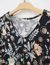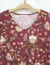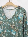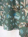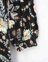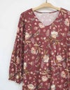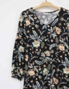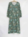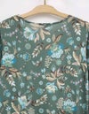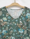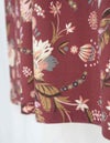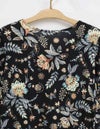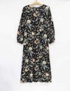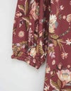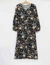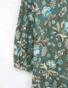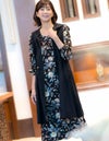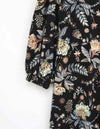 秋らしいダークカラーのベースに、華やかな差し色で気分が上がるサラサ調のプリントです。袖はふんわりギャザーをよせた大人フェミニンなパフスリーブです。襟もとはVネックで、ほどよくシャープさをプラスした8分袖ワンピースです。