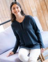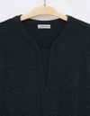 華やかなラメ入りのジャージ素材です。品の良さが際立つ柔らかなV開きの襟元は、クリーンな印象の中に抜け感をプラスした長袖チュニックです。