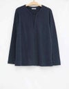 シーンレスで女性らしい印象のなので、合わせるボトムや小物で印象が変わり重宝する一枚です。