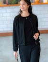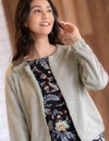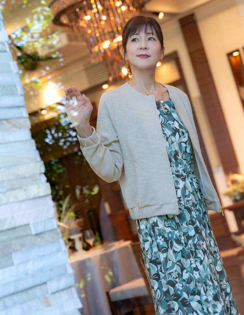 カジュアルな印象になりがちなブルゾンですが、上品な素材感なのできれい目な印象になります。同じシリーズのロングスカート(S5GK3301)ワイドパンツ(S5GK4905)ときれい目でリラクシーなセットアップがおすすめです。ワンピースの羽織りとしても活躍出来ます。