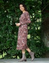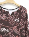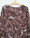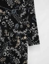 スポーティフ定番のストレッチの効いたプリント薄手ベロアは、オリジナル性の高い素材です。お洗濯による型くずれが少なく、洗濯機も使用可能。ベロアの毛乱れも少なく、シワが発生しても蒸気で回復可能です。レース調の柄にさりげない花柄が入った繊細で女性らしい柄です。襟元のスリットがポイントのシンプルなスッキリシルエットのワンピースです。