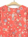 ■スタッフコメントななこ・身長:159cm・体重49kg標準普段、スポーティフのトップスは2サイズ、パンツは2サイズ[着用サイズ2]薄手で伸びのあるベア天竺素材。鮮やかな色柄が印象的です。前身頃肩下にギャザーを寄せ胸元は開き見せのボタンがアクセントになっています。ウエスト位置に切替を施し、後ろ身頃切替位置中央のギャザーで立ち姿を綺麗に見せてくれます。
