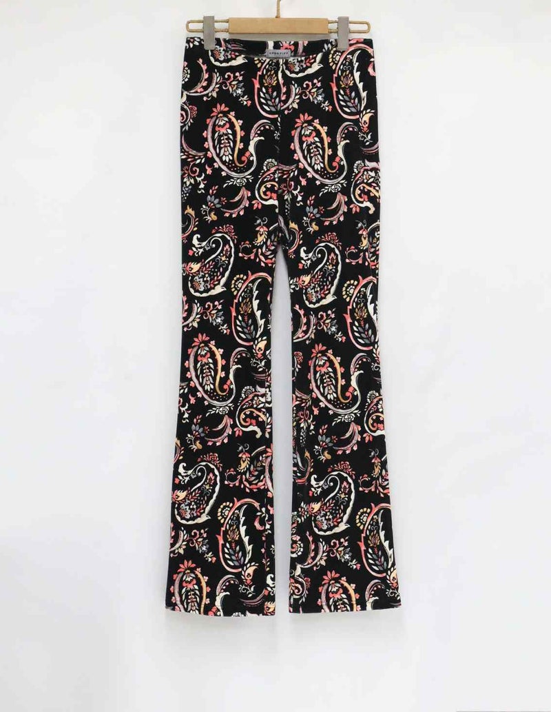 美しい色彩たっぷりの華やかなペーズリー柄は圧倒的に着映えするシリーズです。下着のラインが気にならず、腰まわりのフィット感が抜群なパンツです。ウエストゴムではき心地がよく、足長効果抜群のブーツカットパンツです。