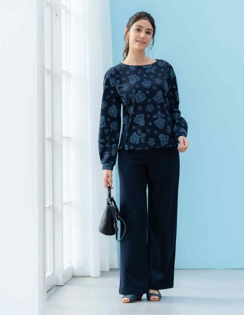 ■スタッフコメントゆうこ・身長:154cmややぽっちゃり標準体形 普段、スポーティフのトップスは2サイズ、パンツは4サイズ [着用サイズ2] 肩にタックが入った『パフ袖』が女性らしく可愛いのが特徴です。S5AF4905ワイドパンツとセットでお勧めです。デニム素材でも相性は良いです。気になる二の腕もカバーしてくれるのが嬉しいですね。