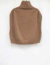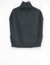 首元は高めのハイネックデザインです。襟は釦付きなので開き具合の調整で襟のデザインを変えることが出来るベストタイプのプルオーバーです。