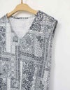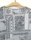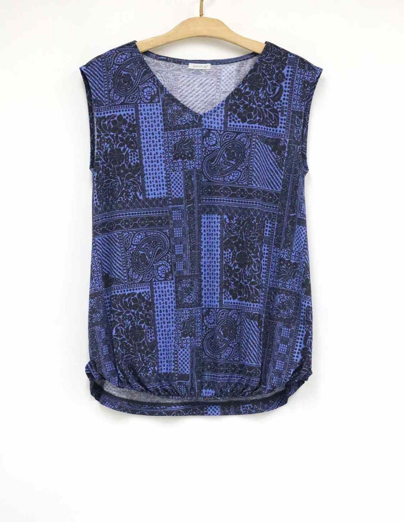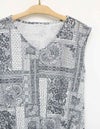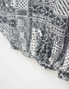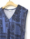 プールや海辺で過ごす大人の女性に似合うアイテムがラインアップ。ペイズリーやドット、植物柄などを組み合わせたバンダナ柄です。ウエスト部分がブラウジング風のデザインで、後ろ丈がやや長めで気になる後ろ姿もカバー出来るノースリーブプルオーバーです。