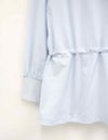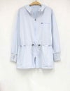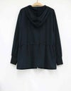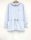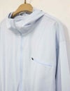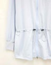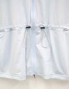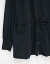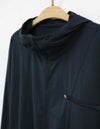 サムホールや高めの襟とフードで、日差しからしっかりカバー。袖口はストレッチ生地を切り替えて、袖まくりしやすい仕様に。ウエストのドローコードで好みのシルエットに調整できるのもポイントです。