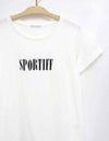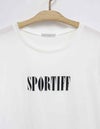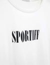 さりげない光沢感とドレープ感さらに吸水性を併せて持ちイージーケア性に優れた柔らかな着心地の素材です。 ”SPORTIFF”のロゴのみをプリントした着回しやすい1枚です。
