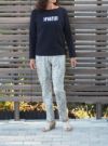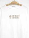 綿とレーヨンを使用した風合いがソフトなヴィンテージ感のある天竺です。胸元にSPORTIFFのロゴのみを落ち着いた色でプリントした、衿ぐりがボートネック風のボックスシルエットの長袖 Tシャツです。綺麗目カジュアルに着こなせるお役立ちの1枚です。
